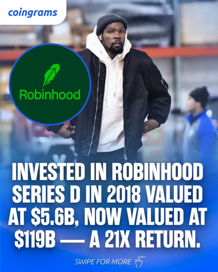 ? 2018年投資股票交易平臺Robinhood的D輪融資(當時估值約56億美元),現(xiàn)估值1190億美元——回報率約21倍