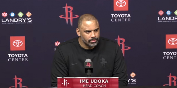 12月12日訊 NBA常規(guī)賽,火箭115-113擊敗快船,賽后,火箭主教練烏度卡出席新聞發(fā)布會(huì),接受記者的采訪。
