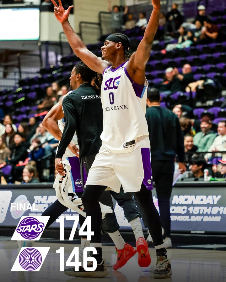 鹽湖城星這邊:科迪·威廉姆斯13分6助攻,亨德里克斯8分8籃板5助攻,希布韋20分22籃板,通杰29分,伊利亞·哈克萊斯34分5助攻,肖恩·伊斯特二世22分7助攻;