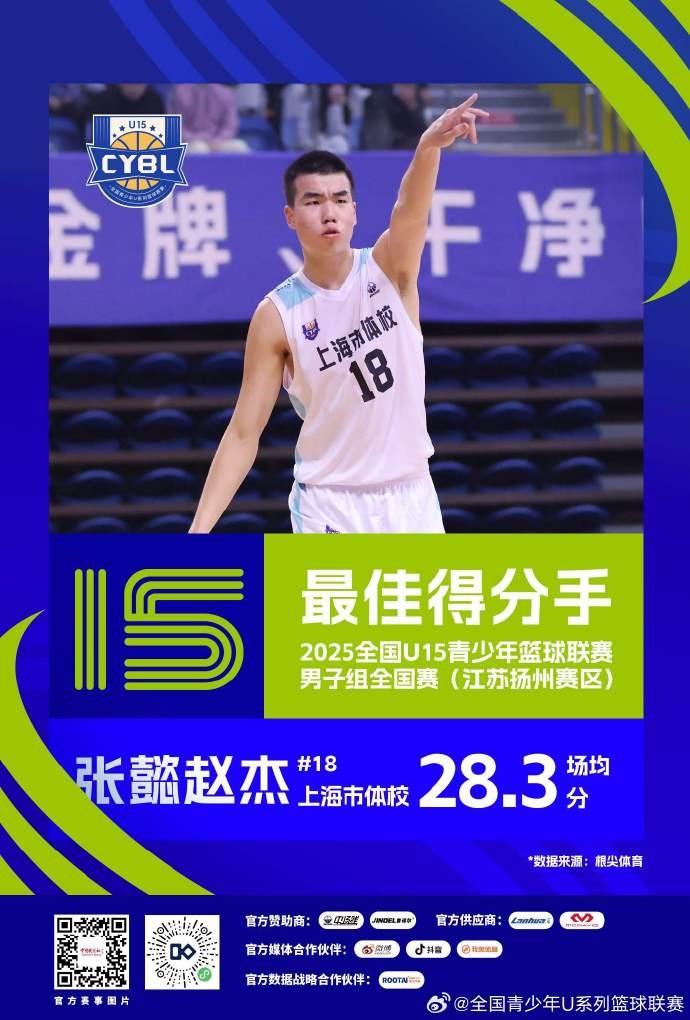 2025全國U15青少年籃球聯(lián)賽男子組全國賽單項(xiàng)榜單揭曉