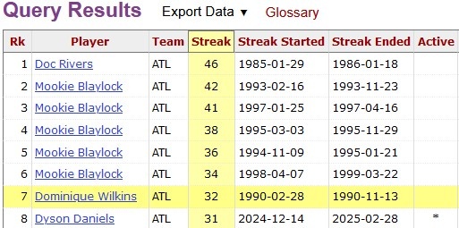 而連續(xù)32場(chǎng)搶斷在老鷹隊(duì)史上能排到并列第7,排名第一的是現(xiàn)雄鹿主帥道格-里弗斯的46次!